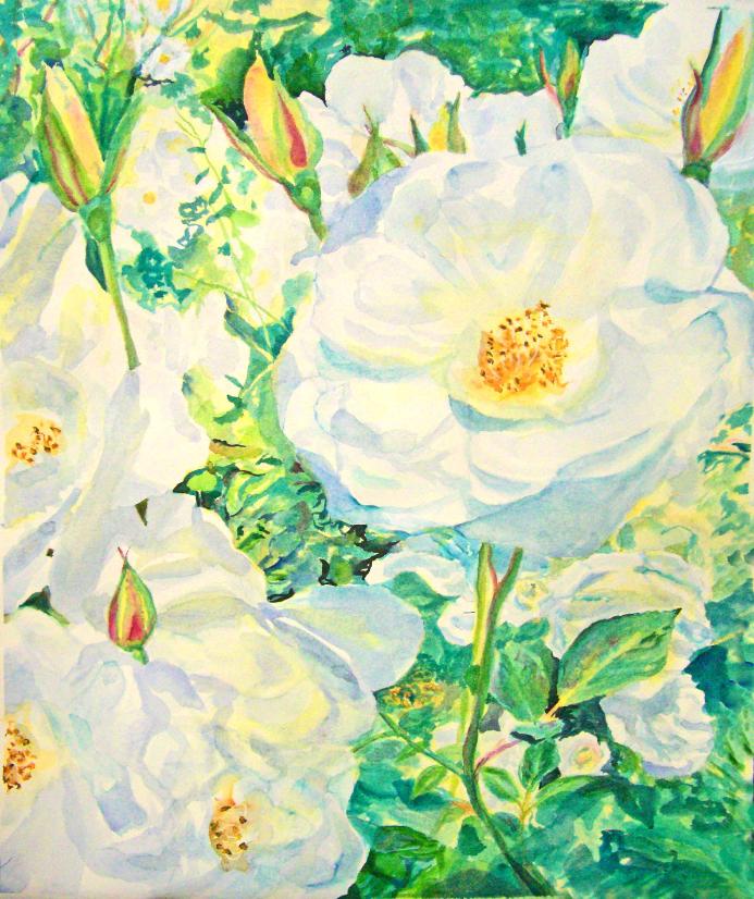 Roses, Wild White Roses 18" X 24" Watermedia on Paper