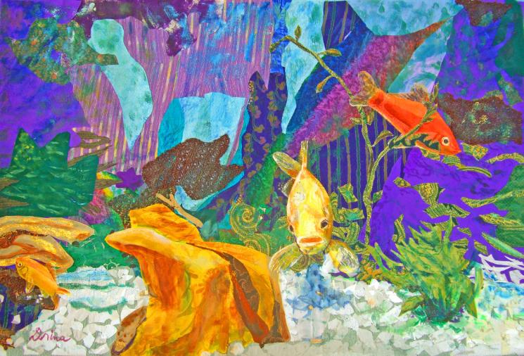 The "Aquarium" above, the enlarged details of the fish - which are silk