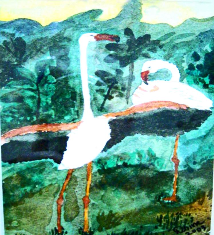 Big Birds 6" X 4" watercolor Sketched at the Singapore Zoo