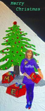 Merry Christmas - embellished fabric collage on 100% cotton matboard. Gifted