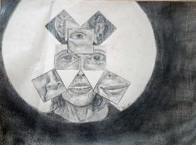 | Portrait of the Artist 30" X 20" Torn Newspaper Collage |