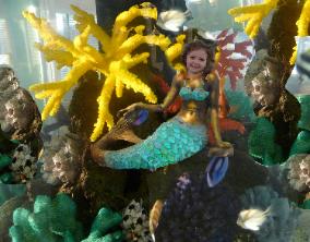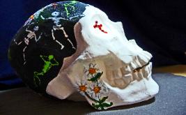 | Plaster of Paris skull embellished with fabric, acrylic paint, and swaroffski crystals Sold in Bakersfield,CA |